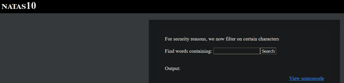 Since grep is already a part of the command, we just need to input the rest of the command.'' /etc/natas_webpass/natas10;